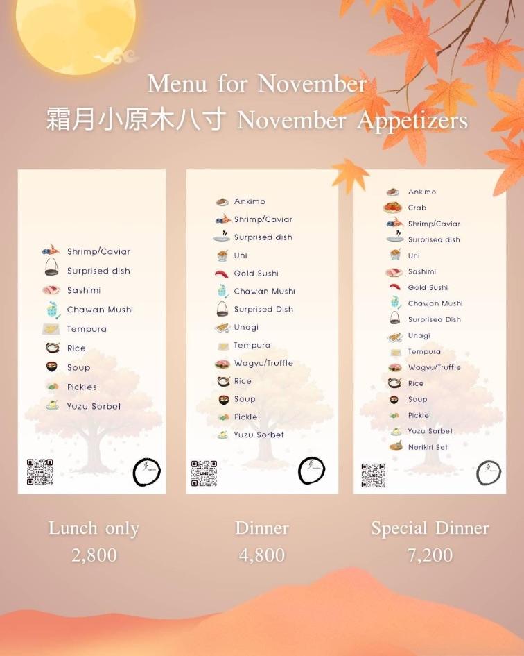 11月のオープンは、1(土)・7(金)・8(土)・14(金)・15(土)・19(水)